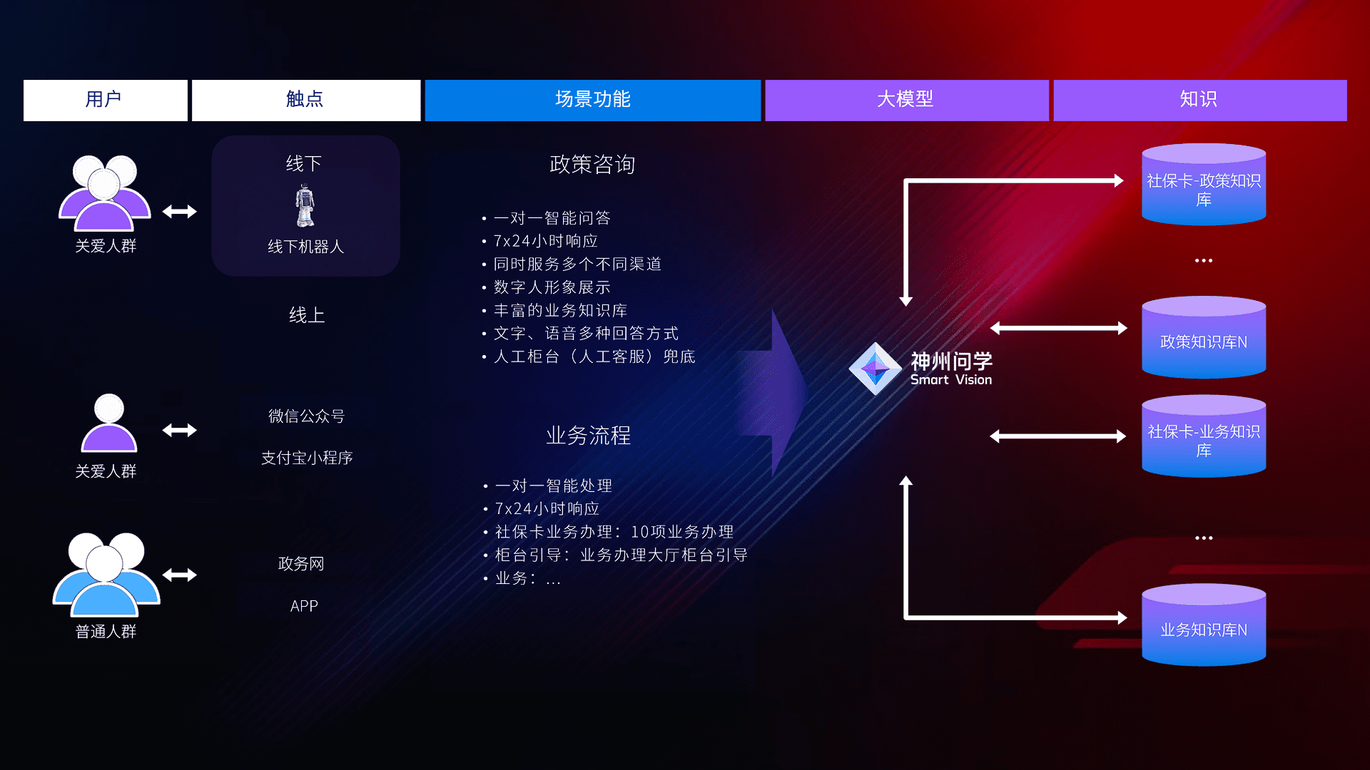 在服务大厅部署客服机器人,,在线上应用和小程序配置客服数字人,,,724小时为群众解答常规问题,,,,客服机器人无法处理的,,,转现场人工处理。。
